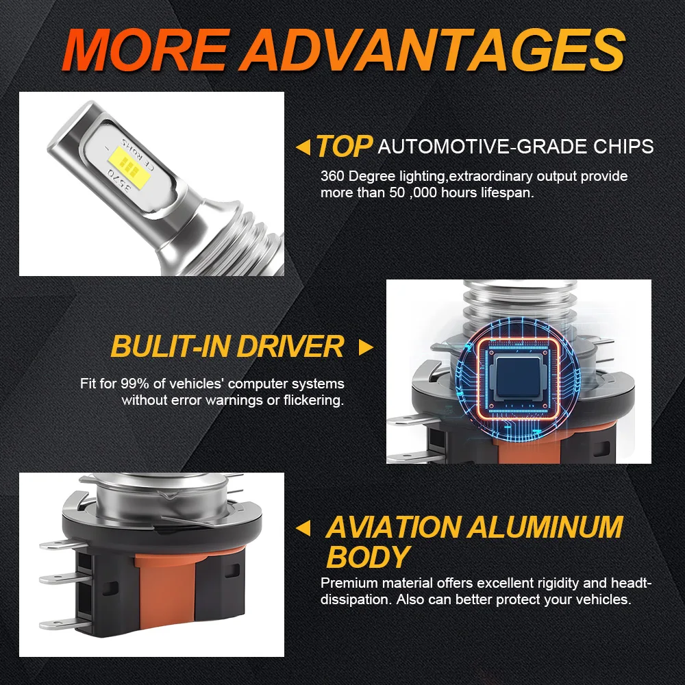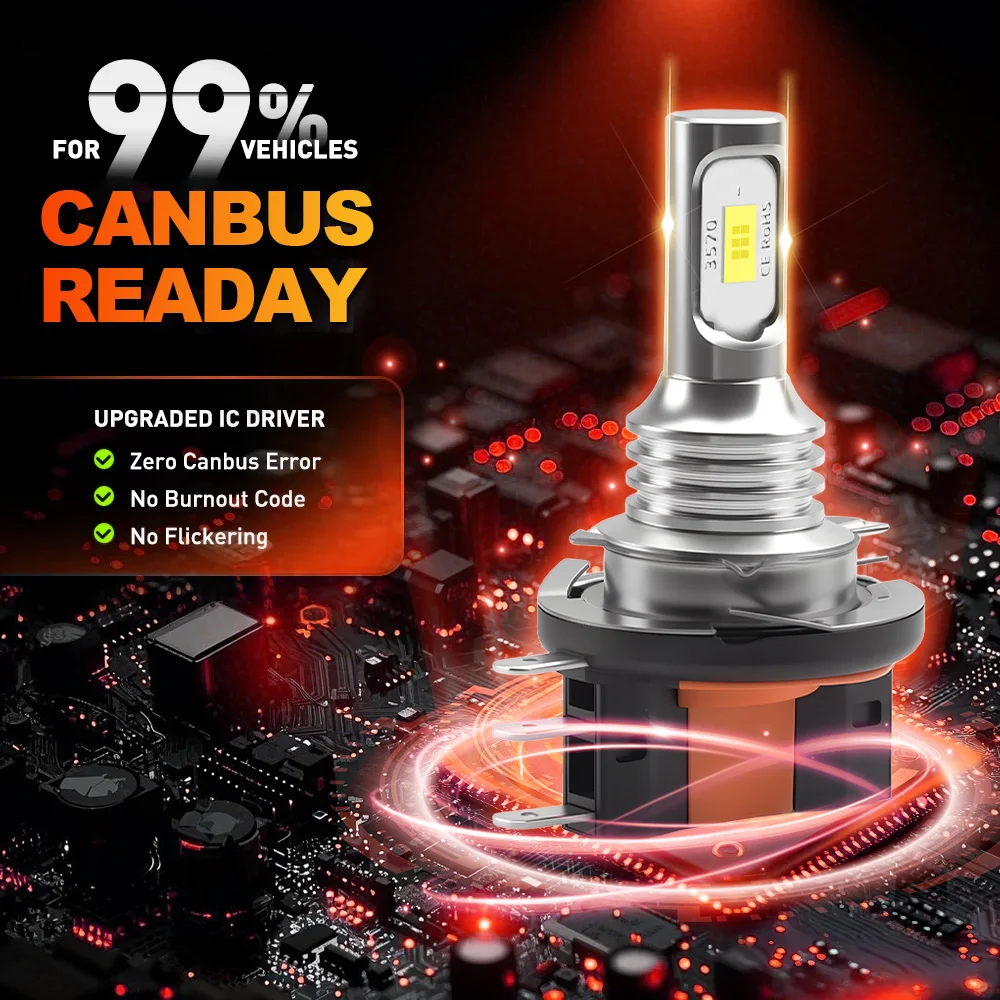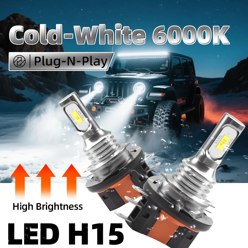 Upgrade your vehicle lighting with these 2PCS H15 LED Headlight Bulbs, delivering 20,000 lumens of super bright light for high beam and daytime running light (DRL) applications. Equipped with 3570 CSP chips, these bulbs provide crisp, consistent illumination, improving nighttime visibility and road safety. Compatible with a wide range of vehicles, including VW, Audi, BMW, Ford, and Mazda, they offer plug-and-play installation and long-lasting performance.