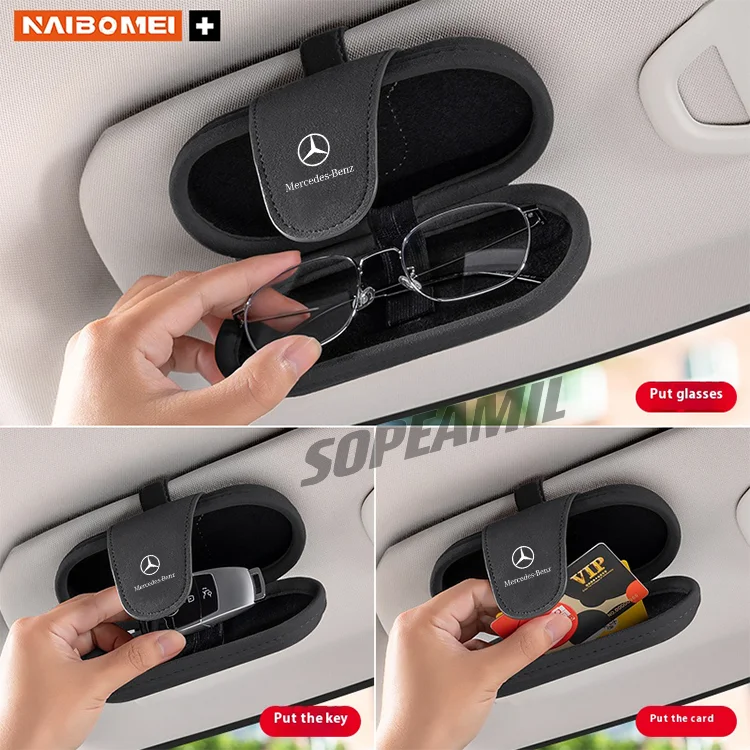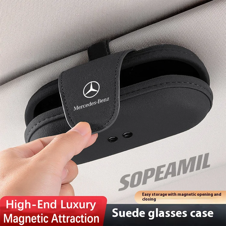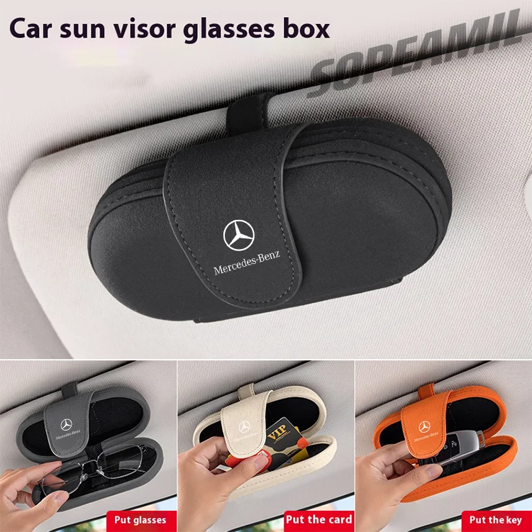 Keep your sunglasses protected and easily accessible with the Car Suede Sunglasses Box. Designed specifically for Mercedes-Benz models including A/B/C/E Class, A35, C43, GLA, GLC, GLB, CLA, CLS, SLK, and SL, this visor-mounted glasses clip adds both convenience and style to your car interior.