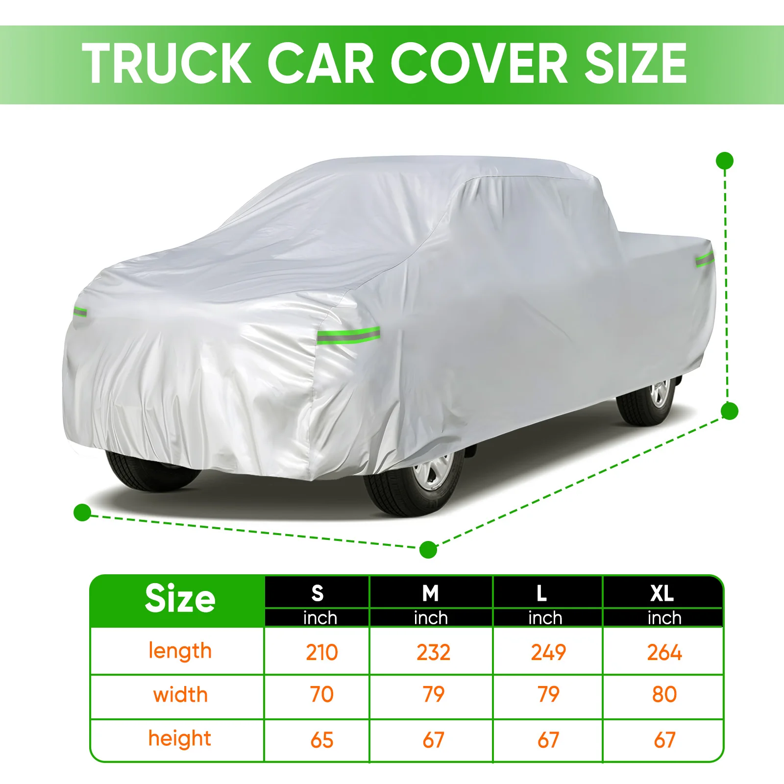 Protect your pickup truck from the elements with the NEVERLAND All-Weather Pickup Truck Cover. Made from 190T polyester taffeta, this cover is waterproof, dustproof, and UV resistant, ensuring full protection against rain, sun, snow, and dirt. Its full exterior design shields your truck completely, while the durable, lightweight material provides long-lasting performance without scratching your paint. Perfect for outdoor parking and storage, it features a snug fit with secure straps to prevent slipping in windy conditions. Easy to install and remove, this cover combines practicality, durability, and reliable protection, making it an essential accessory for pickup owners who want to keep their vehicle in pristine condition.